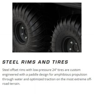 Speed – Water: Travels at 3 mph (5 km/h) on water, perfect for amphibious exploration.