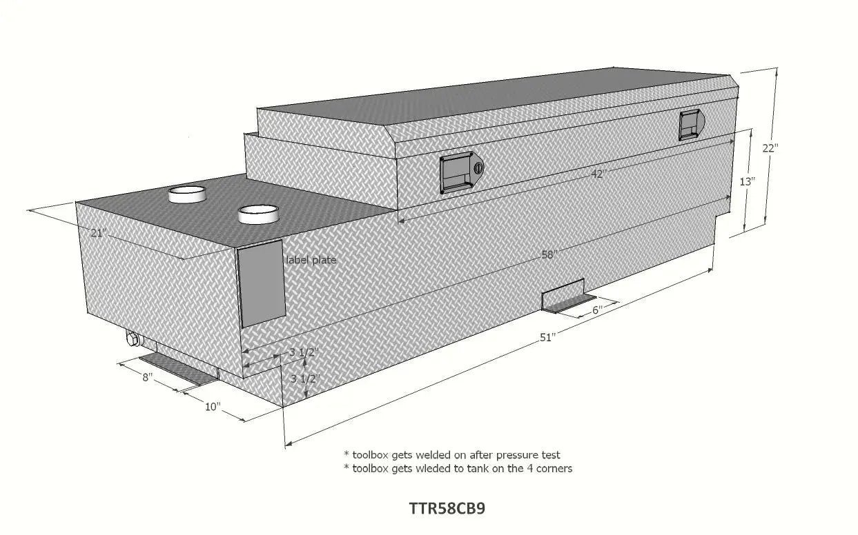- Rectangular Transfer Tank Toolbox: 42 or 58 gallon sizes.