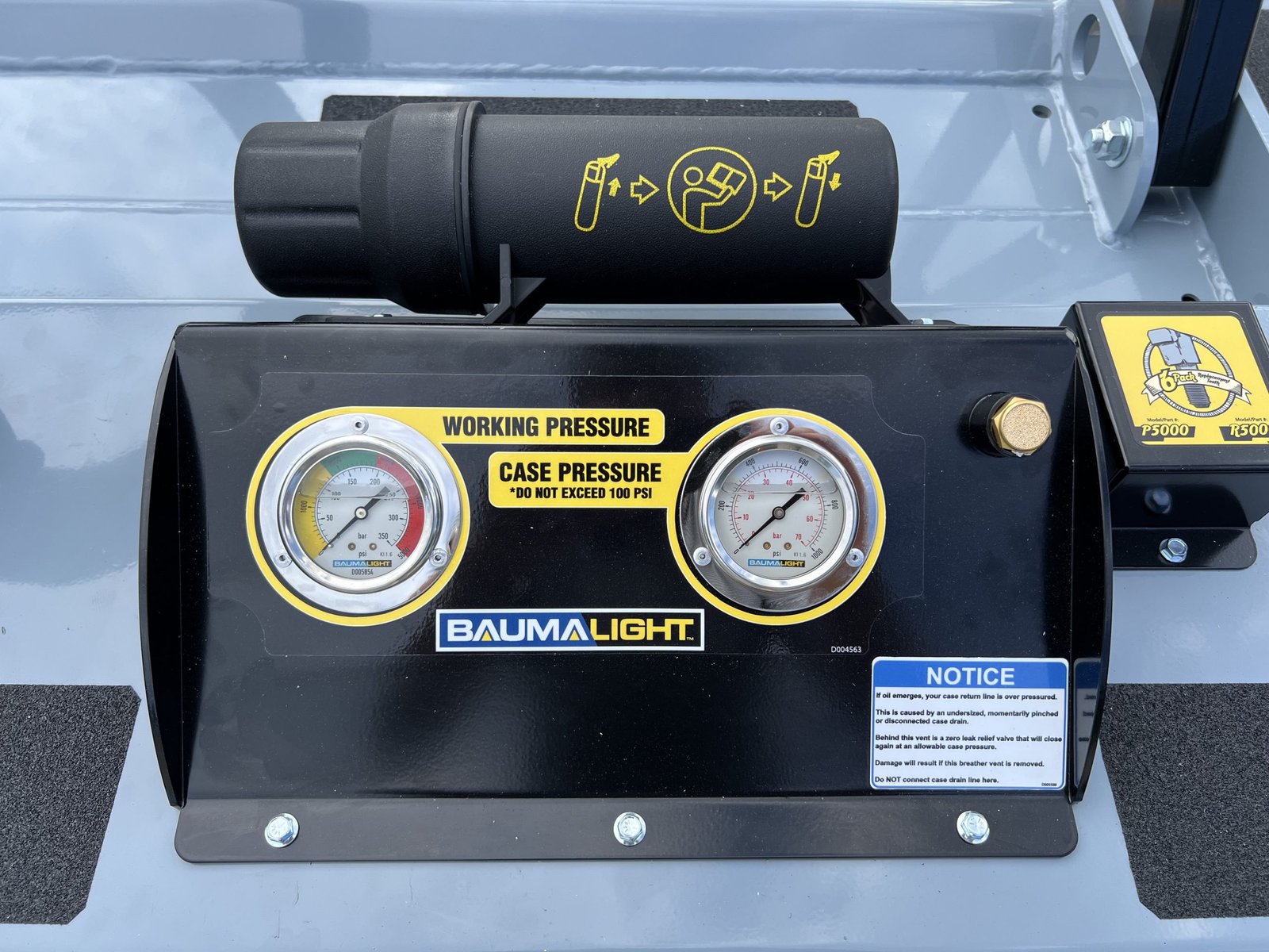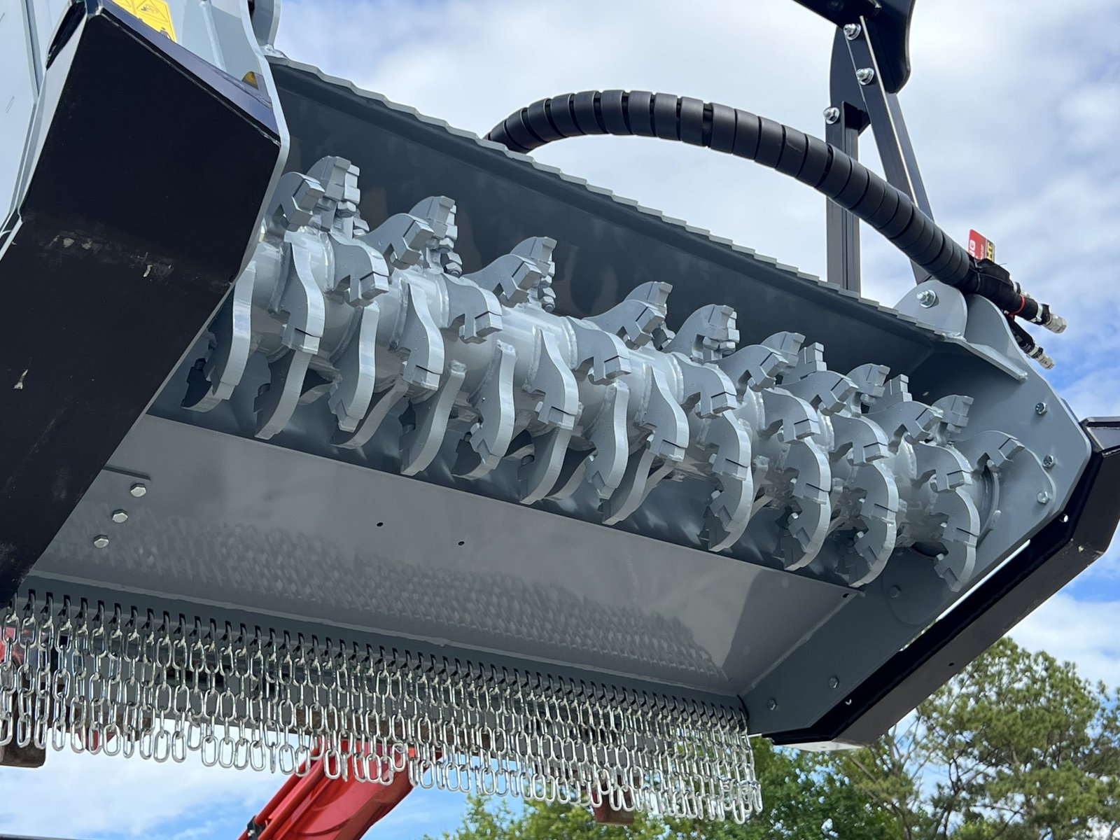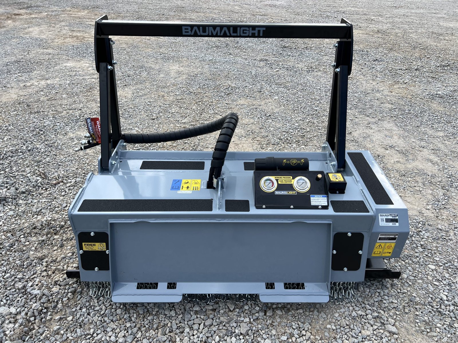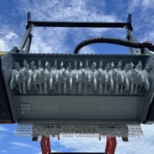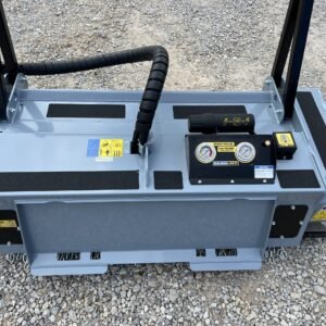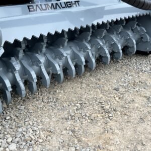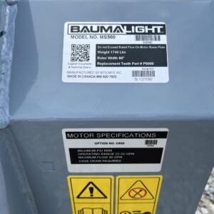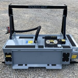 Baumalight’s 500 series fixed tooth brush mulchers for skid steers are designed to maintain and clear fence lines on farms and entry level contractor work. The 500 series Baumalight brush mulchers will efficiently mulch heavy brush and small trees and are offered with two different types of teeth. The Planer style teeth take small bites and provide the most efficient mulching and cutting. The Ripper style teeth have more of a shredding mulching action. Their v-shaped design makes them less susceptible to impacts with hard objects like stones, making them the better choice when mulching below grade and in fence lines. The 500 series skid steer mulchers come with pressure gauges which are very handy to watch and see how close you are to maximum pressure. Once you start blowing over relief the mulcher becomes very unproductive.