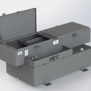 The BCI L rectangular tank toolbox combo is designed with heavy duty baffling, 12 gauge mild steel, and sports a sleek charcoal black finish. The charcoal black finish is supported by a long lasting and durable polyurea coating.