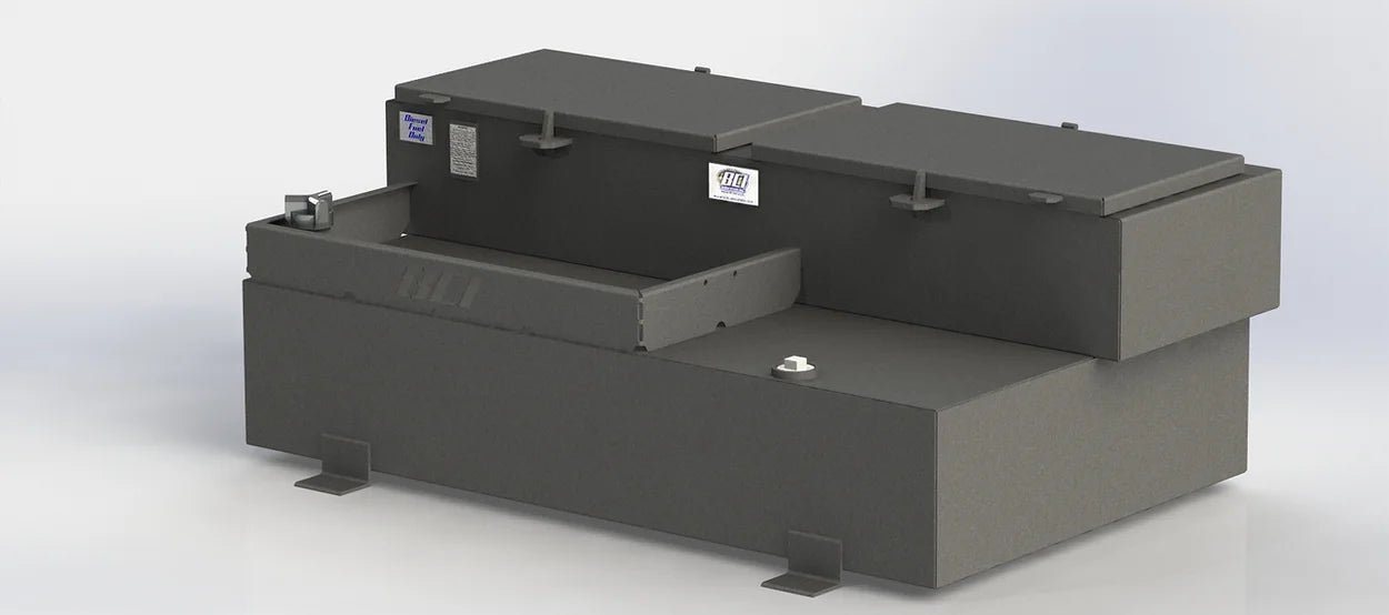 BCI Fabrication rectangular steel tank toolbox combos are designed to fit short bed, long bed and flatbed trucks. The rectangular tank toolbox combo comes standard with a 10 inch toolbox welded above a diesel fuel tank.