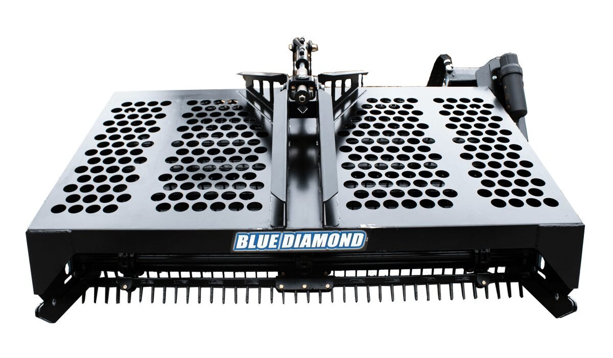The Blue Diamond® Hydraulic Rock Rake is great for removing rocks and unwanted debris with your skid steer or track loader. The hydraulic bucket collects debris as small as 3/4 of an inch and leaves a clean, level surface. Save labor and time on your next landscaping job with the hydraulic rock rake.