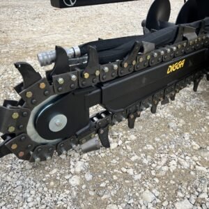 Equipped with Digga’s Combination Chain configuration (cup teeth and tungsten shark teeth), it is suitable for most applications. Will cut through hard soil, roots, soft shale, and rocky conditions. The adjustable depth control foot ensures precise trench depth every time, while the patent-pending crumber bar starts in the trench—eliminating the need for manual resets.
