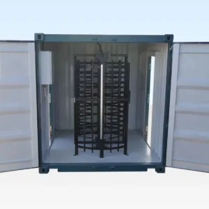 On sites needing to control site access for either visitors, or personnel the double turnstile can also be linked and used in conjunction with many standard card systems or biometric entry software systems (not included). The turnstile provides both access onto the site and exit from the site in a single unit. The steel unit is easily incorporated with site hoarding and fencing to provide complete site security.