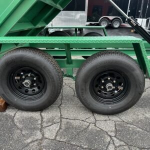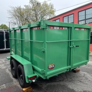 Stock # VIN 53FBN1027SF100310 6″x10′ Green Covered Wagon Dump Trailer 9,990#lbs GVWR (Gross) 5,200#lbs GAWR (AXle) 2,760#lbs Curb Weight 7,230#lbs Payload 1,000#lbs Max Hitch Weight 2″x4″x11ga Tube Top Frame 2″x5″x7ga Tube Bottom Frame 2″x5″x7ga Tube Tongue 2 5/16″ Adjustable Ball Coupler 7,000# Drop Leg Jack 14ga Formed Tread-plate Fenders EZ-Lube Equalized Leaf Spring Axles 15″ Silver Powder Coated Wheels 7-way Electrical Plug 48″ Side Wall Height 29″ Deck Height 18″ Coupler Height 2 Way Combination Gate/Barn 2500 PSI 12VCD Pump System UP and Down Deep Cycle Marine Battery . on Debit/Credit Card not included Located at: , Inc. . at ( ext. 3 or 4 options available No Credit? Bad Credit? We also have Rent-to-own options available with no credit check! approval after submitting rental application. All trailers also include 20-day NH Temp Plates ! Please a quote We also Install Accessories – Add wheel chocks, D-rings, E-track, winches, ladder racks, and more! In Conclusion we also do our best to make sure our listings are accurate. Please to verify options and features are correct. Prices are subject to change. Options: 48″ High Side 7000# Drop Leg Jack 5 Amp Battery Charger TARP SPARE TIRE AND MOUNT