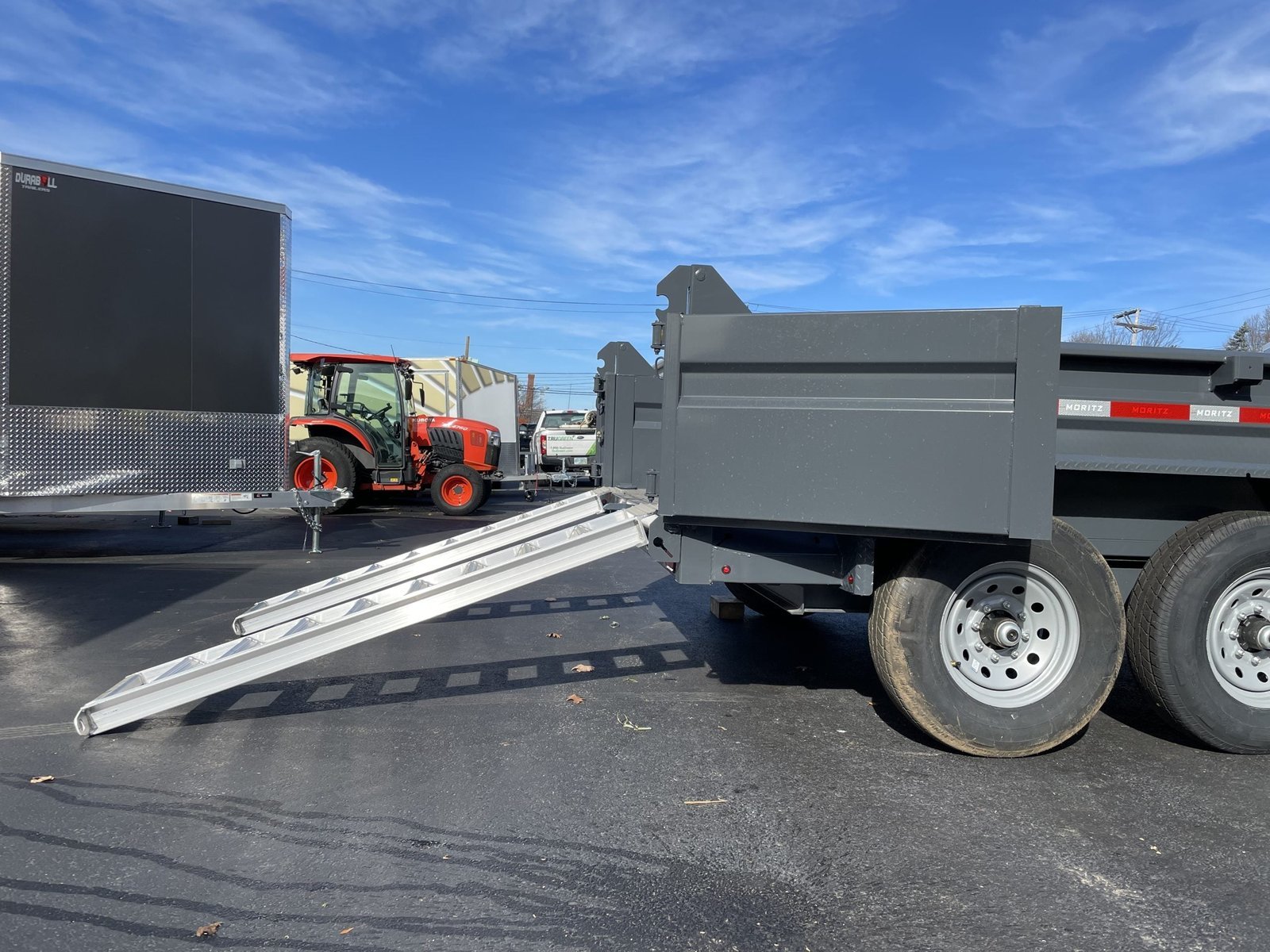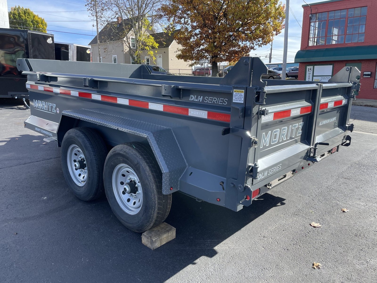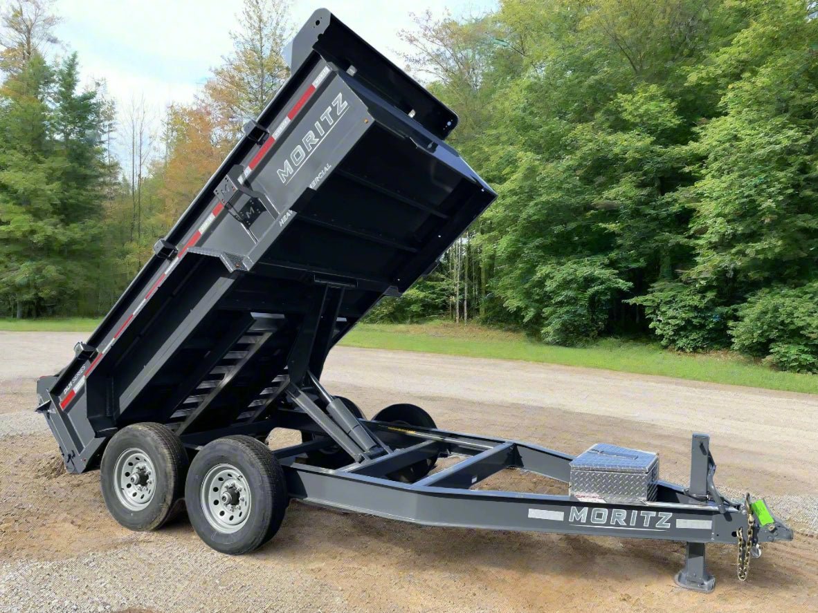 Stock # VIN 4WXBD1721S1053274 81.5″x12′ Moritz Commercial Grade Dump Trailer The Moritz DLH-Series trailer is our low-profile, heavy duty commercial dump trailer . Standard features include a toolbox, aluminum ramps, self latching hold back latches for the gates and 24″ sidewalls. Various options are available. With it’s new design, not only will you own the most rugged and long lasting dump trailer on the market, you will also be towing the best looking dump trailer. Standard Features & Specs: 12,000lbs GVWR (Gross) 6,000lbs GAWR (Axle) 3,760lbs Curb Weight 8,240lbs Payload 2 5/16″ 4 – Bolt Adjustable Ball Coupler 7,000lbs Drop Leg Jack Dexter EZ-Lube Torsion Axles (Low Maintenance – Smooth Ride) 8-Bolt 16″ Grey Mod Wheels 7-way Electrical Plug LED Lighting and Sealed Wire Harness 3/8″ Safety Chains w/Latch Hook Electric Brakes on All Four Wheels 10 Gauge Steel Sidewalls & Floor 24″ Side Wall Height 8″ Cold Formed I-Beam Frame 3″ Channel Body Crossmembers 2″ x 3″ x 3/16″ Tube Body Main Rails 1/8″ Steel Diamond Plate Fenders Scissor Hoist – Power up/Power Down 29″ Deck Height 18″ Coupler Height 2 Way Combination Gate/Barn Self Latching Rear Gate Hold Back Deep Cycle Marine Battery (4) 5,000lbs D-Rings Welded Into Floor Lightweight Aluminum Ramps Mounted Underneath (45lbs compared to 96lbs steel ramps) 15-1/2″ Wide x 72″ Long Aluminum Ramps Aluminum Diamond Plated Toolbox with Storage 6 Yards Dump Body Volume acid washed – two coats primer – two coats paint 2-Year on Debit/Credit Card Dealer not included. Options: Stake Pockets Solar Charger Charcoal Paint Upgrade