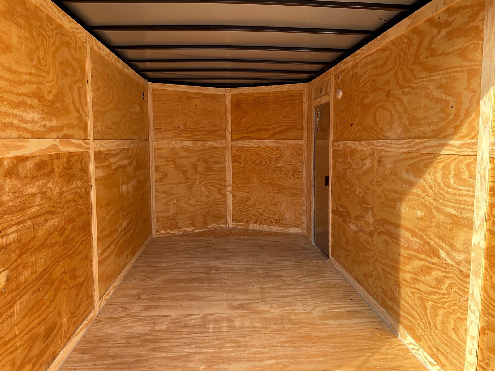 Stock # VIN # 1P9BE1428SN949366 Panther Cargo Trailers 7′ Interior Height Standard Features: Tube Frame LED Lights 16″OC Side Post 4″ Tube Main Frame 15″ 205/75R15-Radial Tires V-Nose Front Galvalume Roof Tubular Side Post E-Z Lube Hubs 4-Way Plug 3/8 Walls Silver Mod Wheels 2 5-16 Coupler 3/4″ Floor 24″ Stone Guard License Plate Bracket 3500 lb Drop Spring Axle Med. Duty Ramp w/Spring Assist Cash Price 4% Surcharge on Debit/Credit Card Dealership documentation fee not included Options: 7′ Interior