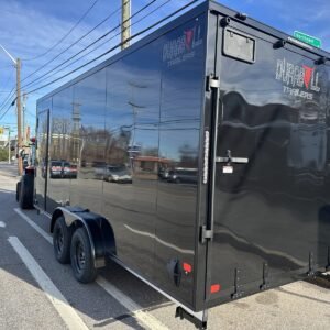 This DuraBull DBSS 7×18′ enclosed cargo trailer is a robust and reliable solution for all your hauling needs, built with a durable, all-aluminum frame and screwless exterior for a sleek, long-lasting finish. Key Features & Benefits: 18′ Length x 7.5′ Width: Provides ample space for a variety of cargo, from tools and equipment to recreational gear. All Tubular Aluminum Construction & Frame: Ensures a lightweight yet incredibly strong and rust-resistant trailer. Dexter Torflex Axles with EZ Lube Hubs: Provides a smooth, stable ride and easy maintenance. Screwless Skin & Molding: Offers a clean, professional look and added durability. Max Size Rear Ramp Door (82″W x 76″H): Allows for easy loading and unloading of large items. 32″ x 72″ Side PT Door – RH Hinge: Provides convenient access to the interior. 3/4″ DryMax Decking & 3/8″ DryMax Sidewall Kick Plate: Offers a durable and moisture-resistant interior. LED Lighting (Lifetime for Original Purchaser): Provides bright, reliable lighting and long-lasting performance. 16″ OC Roof, Walls, and Floor: Ensures a strong and stable structure. 2″ x 4″ Tube Main Rails: Provides a robust frame for hauling. 60″ V-Nose: Improves aerodynamics and adds extra storage space. One Piece Aluminum Roof: Offers superior weather protection and longevity. Weather Protected Wiring with Heat Shrink Connectors: Ensures reliable electrical connections. 12v Surface-Mount Switch & 12 Volt LED Dome Lights: Provides convenient interior lighting. License Plate Bracket w/ Separate Light: Ensures safe and legal operation. A-Frame with Center Draw Bar: Provides stable towing and a strong connection. VIN 7TE7EFF28SN000340 Options: Ramp on V-Nose Glides and Mates on Floor Ramp Door Flaps 7′ Interior Height Blackout Package