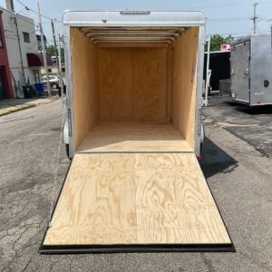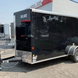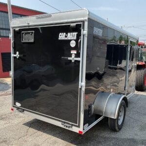 Stock # VIN 5A3C612SL001906 6×12 Car Mate V-NOSE Enclosed Cargo Trailer Features: Car Mate Sportster Trailer – CM612ECV 2′ V Front .032 One Piece Aluminum Roof (LIFETIME ) Rounded Roof to Minimize Seams Fiberglass Nose Cap 12ft Long 6ft Wide Steel Frame Epoxy Ester Alkyd Primer and a Catalyzed Paint by PPG. High Performance Urethane Coating Paint that is Resistant to Chipping. 2,000lb Top Crank A-Frame Jack Sand Pad 2in 5,000lb Coupler Forged Angle Iron Crossemembers Crossmembers 24in On Center 2in x 3in Tube Main Rails Tube Aluminum Roof Bows Roof Bows 24in On Center 1/4″ Safety Chains with 1/4″ Slip Hook 78″ Interior Height Vertical Posts 16in On Center Standard A-Frame Tongue Straight Axle Single Axle Standard Track No Brakes 5 Bolt Pattern EZ Lube Hubs 1/2in Studs Dexter Axle Spring Suspension 3,500lb Axle 2,990 GVWR ST205/75D15C Radial 5B Silver Spoke Wheel Load Star Radial Tires Max Size Rear Ramp Door – Standard Duty 32″W Side Man Door Aluminum Tie Backs for Doors 3/4in Plywood Decking (LIFETIME ) 3/8″ Grade A Plywood Interior Sidewall 12v LED Dome Light All LED Lights Inside and Out (LIFETIME ) Molded 4-Way Plug .030 Aluminum Exterior Screwless Exterior Hot Dipped Galvanized Hardware Electrolysis Barrier 24in Stone Guard Sidewall Flow-Thru Vents 95% American Made Parts Options: Screwless Exterior 2 Dome Lights Wall Switch 2 Wall Vents Rear Ramp Door 6′ Interior Height