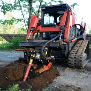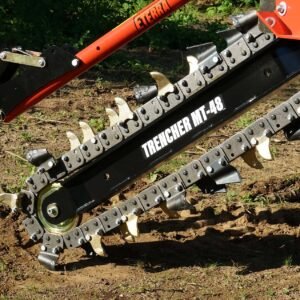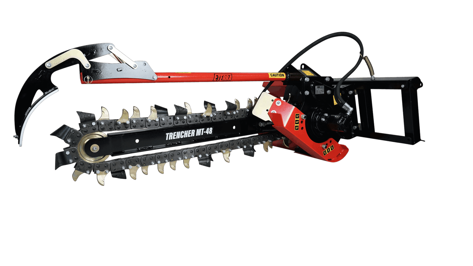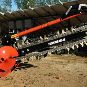 Eterra’s 4 Foot Trencher for Skid Steers is ideal for constructing long industrial or personal property trenches with ease. This trencher has set the standard today for reliability and effectiveness. Driven by the same proven gearbox as the Eterra Auger, it will cut through even the rockiest soil conditions. Just watch out for water lines.