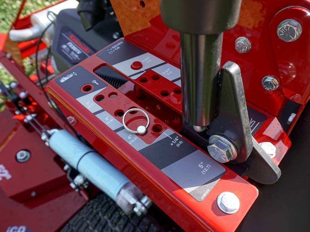 Hand-Operated Height-of-Cut Adjustments: Make quick, on-the-fly cutting height changes without stepping off the mower, keeping productivity high.