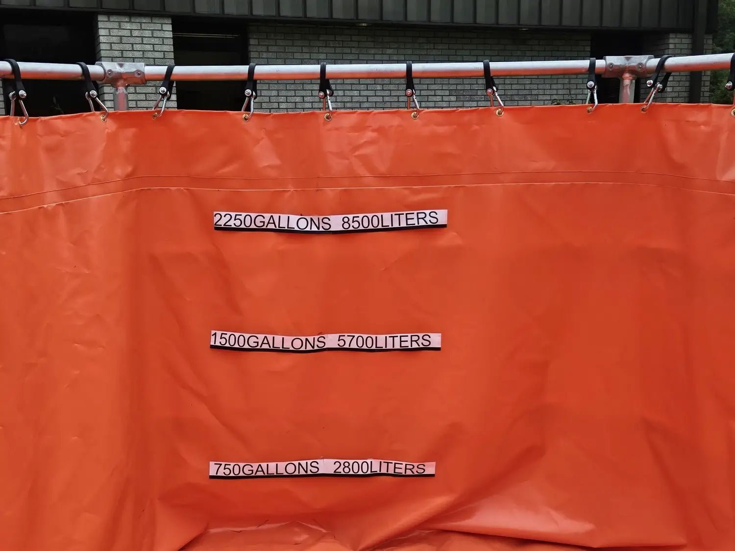 The tank liner is suspended from heavy duty tension straps with quick release snap clips. This design relieves pressure on the frame and adapts to the contour of the setup site which makes it ideal for rough terrain.