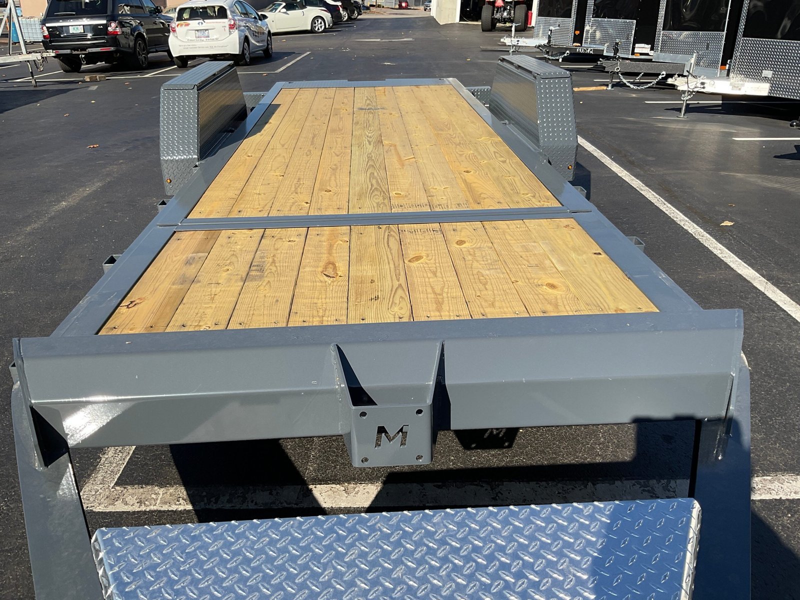 Stock # VIN 4WXBE2628S1053230 81.5″x20′ Moritz Commercial Grade Equipment Gravity Tilt Trailer The Moritz ELBH-Series trailer is our low-profile, heavy duty commercial equipment gravity tilt trailer . Standard features include an aluminum toolbox, one piece 8″ cold rolled I-beam, gravity tilt deck, front head ache rack, tilt latch and cylinder shut off valve, rear corner tie down, tie down between the fenders (flush with deck and fenders), heavy duty 4″ x1/4″ bar stake pocket and step to access deck. Various options are available. With it’s new design, not only will you own the most rugged and long lasting equipment trailer on the market, you will also be towing the best looking equipment trailer. Standard Features & Specs: 14,000lbs GVWR (Gross) 7,000lbs GAWR (Axle) 3,660lbs Curb Weight 10,340lbs Payload 20′ Model – 4’6″ Long Stationary Deck Height 22-1/2″ to 23-1/2″ Deck Loading Angle – 13 Degrees Width between the fenders – 81.5″ 8″ Cold Formed Beam Stake Pockets -4″ x 1/4″ Formed Bar Tool Box Aluminum Diamond Plate Fenders 1/8″ Steel Diamond Plate Suspension Rubber Ride Suspension Brakes Electric (all wheels) 14000 lb GVWR – 16″ 10 Ply Rated 8 Bolt Jack – 12000 lb Coupler – 2-5/16″ Adjustable (4 bolt) Safety Chains – 3/8″ with Latch Hook Lights and Wiring LED Lights & Sealed Wire Harness – 2 Year Limited (see for details) Available Options Fenders with Built-In Toolboxes Hydraulic Jack Pintle Ring Pallet Fork Holder Spare Tire & Wheel on Debit/Credit Card Dealer not included. Options: Fenders with Built in Tool Box