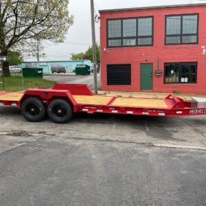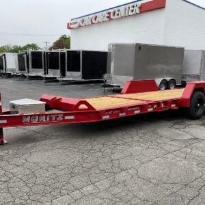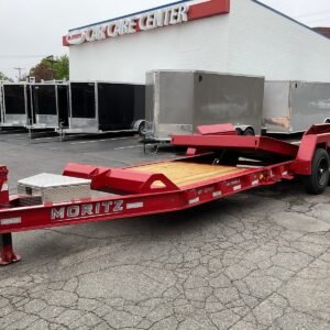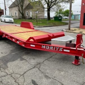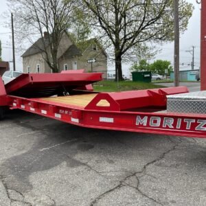 Stock # VIN 4WXBE2828S1052091 81.5″x22′ Moritz Commercial Grade Equipment Gravity Tilt Trailer The Moritz ELBH-Series trailer is our low-profile, heavy duty commercial equipment gravity tilt trailer . Standard features include an aluminum toolbox, one piece 8″ cold rolled I-beam, gravity tilt deck, front head ache rack, tilt latch and cylinder shut off valve, rear corner tie down, tie down between the fenders (flush with deck and fenders), heavy duty 4″ x1/4″ bar stake pocket and step to access deck. Various options are available. With it’s new design, not only will you own the most rugged and long lasting equipment trailer on the market, you will also be towing the best looking equipment trailer. Standard Features & Specs: 16,000lbs GVWR (Gross) 8,000lbs GAWR (Axle) 4,440lbs Curb Weight 11,560lbs Payload 22′ Model – 6’6″ Long Deck Height 22-1/2″ to 23-1/2″ Deck Loading Angle – 13 Degrees Width between the fenders – 81.5″ 8″ Cold Formed Beam Stake Pockets -4″ x 1/4″ Formed Bar Tool Box Aluminum Diamond Plate Fenders 1/8″ Steel Diamond Plate Suspension Rubber Ride Suspension Brakes Electric (all wheels) 16000 lb GVWR – 17.5″ 16 Ply Rated 8 Bolt Jack – 12000 lb Coupler – 2-5/16″ Adjustable (4 bolt) Safety Chains – 3/8″ with Latch Hook Lights & Wiring LED Lights & Sealed Wire Harness – 2 Year Limited (see for details) Available Options Fenders with Built-In Toolboxes Hydraulic Jack Pintle Ring Pallet Fork Holder Spare Tire & Wheel Located at: , Inc. . options available No Credit? Bad Credit? We also have Rent-to-own options available with no credit check! approval after submitting rental application. All trailers also include 20-day NH Temp Plates ( Located at: , Inc. . ! Please a quote ( ext. 3 or 4 We also Install Accessories – Add wheel chocks, D-rings, E-track, winches, ladder racks, and more! In Conclusion we also do our best to make sure our listings are accurate. Please to verify options and features are correct. Prices are subject to change. Options: Tool Box Fenders Color Red