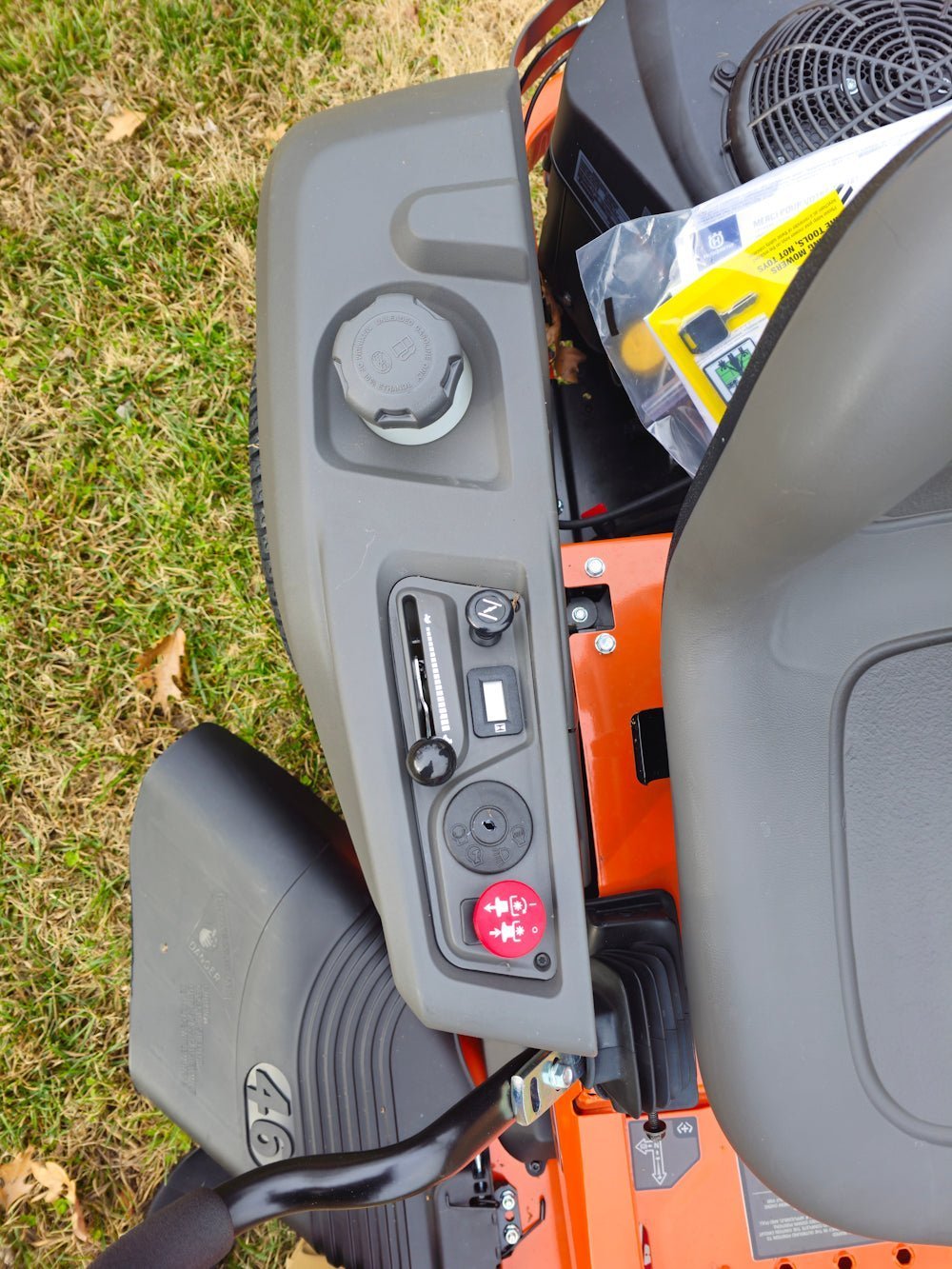 - Side-mounted 3.5-gallon fuel tank ensures longer mowing sessions with fewer stops.