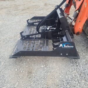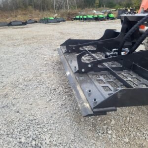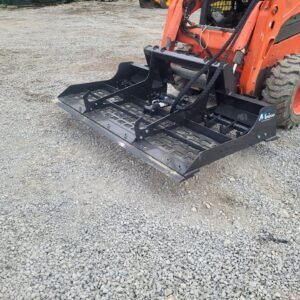 The skid steer land leveler attachment works by attaching it to the front of a skid steer loader. The adjustable leveling blade levels uneven surfaces, redistributes soil, and grades the terrain. The unit’s design allows for precise control and efficient operation, making it ideal for achieving a smooth and even surface for construction or landscaping projects.