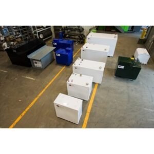 - 125 gallon: 42″L x 31″W x 39″H; (2) 3″ NPT & (5) 2″ NPT; 523 pounds.