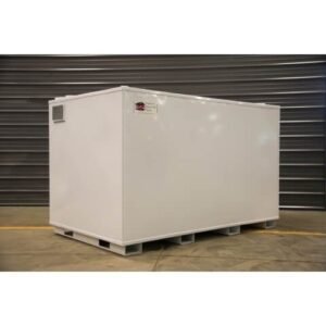- 2,000 gallon: 119″L x 71″W x 72″H; (4) 4″ NPT & (5) 2″ NPT; 3,500 pounds.