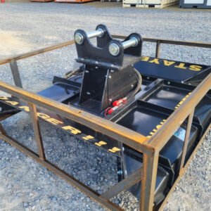 The brush cutter includes a coupler designed with 35mm pins and a 12″ pin center-to-center measurement, featuring approximately 7.25″ ear spacing. This compatibility allows the mower to fit a wide range of mini excavators and backhoes. Additionally, if you have a quick attach system, you can easily adapt this cutter to your existing equipment. - 54″ Cutting Width