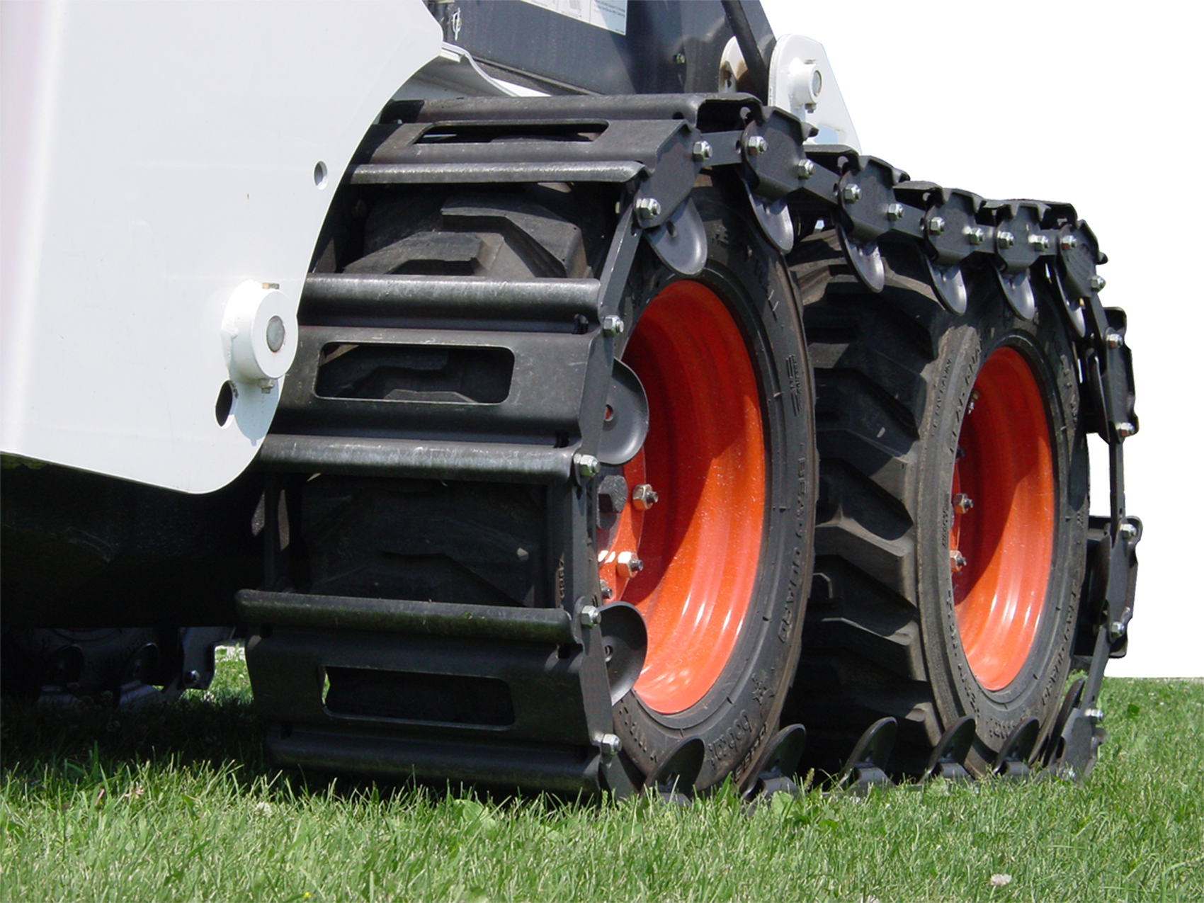 Enhance skid steer performance with Over the Tire Tracks for TNskidsteer. This heavy-duty accessory boosts traction and protects tire tracks from wear. Made with durable, industrial-grade materials, it integrates seamlessly with your skid steer, ensuring great performance on tough terrain. Upgrade your equipment and increase productivity with this essential add-on.