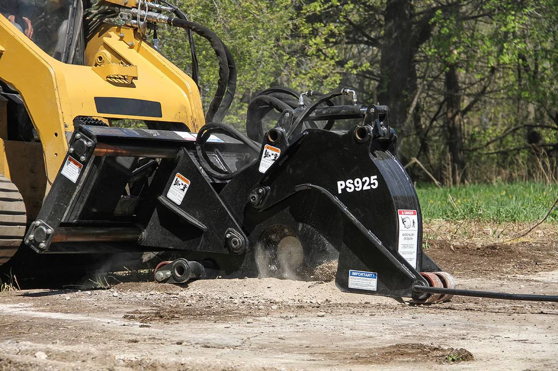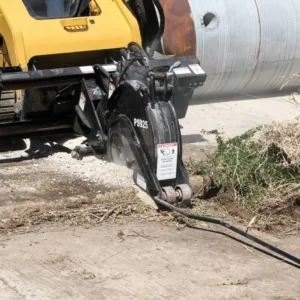 The Pavement Saw is a cost effective alternative to a more cumbersome self-propelled saw unit. With its powerful planetary/motor combination, the 9” cutter wheel depth is ideal for cutting patches, expansion joints and pavement cuts for utility and traffic loops. Planetary drive motor and tungsten carbide teeth eat through asphalt and hard surfaces with ease. The patented electro-hydraulic side-shift enables the Razor Tooth to cut close to walls, curbs and other fixed objects.