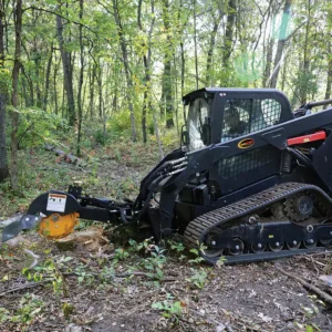 The Skid Steer Stump Grinder is the choice for arborists, large contractors, landscapers and maintenance departments. Mounted on a skid steer, these units are easy to maneuver into tight areas that would be impossible to reach with other types of machines without creating unnecessary property damage. It features the ideal combination of maneuverability, power, durability, and simplicity.