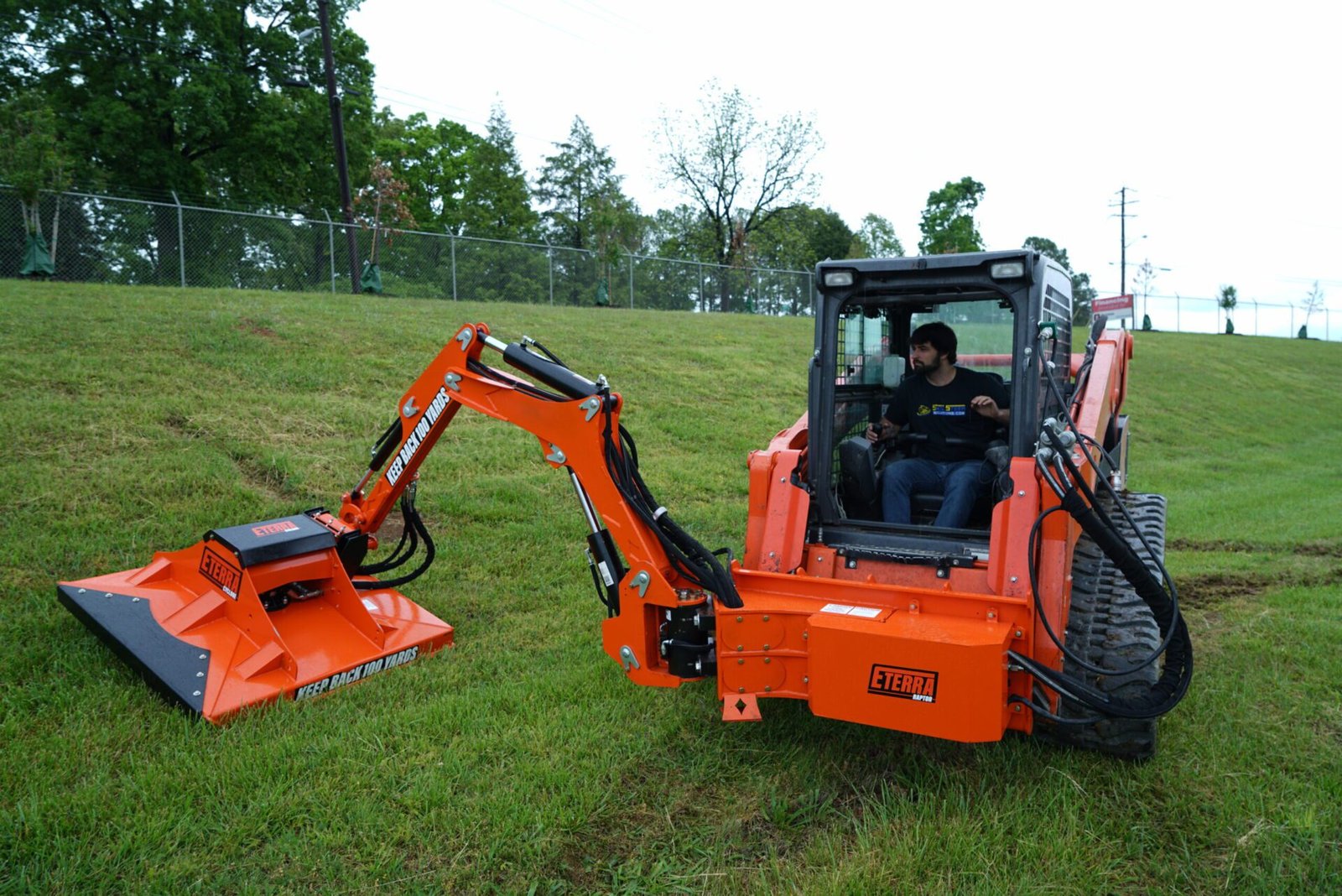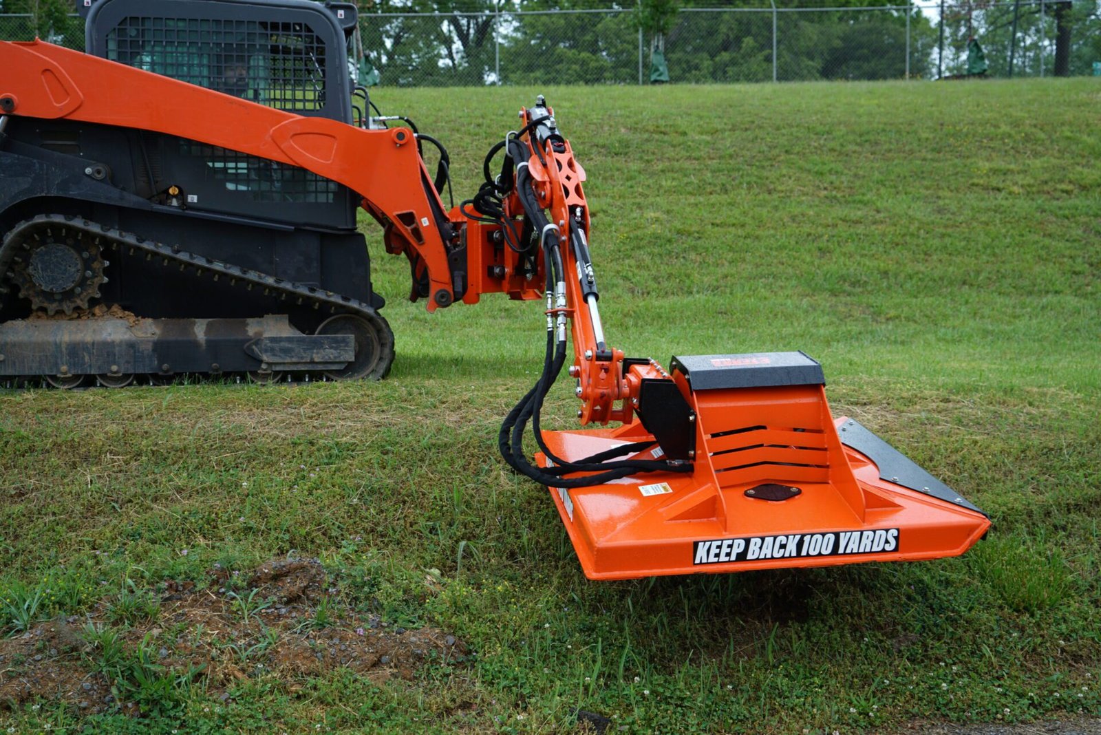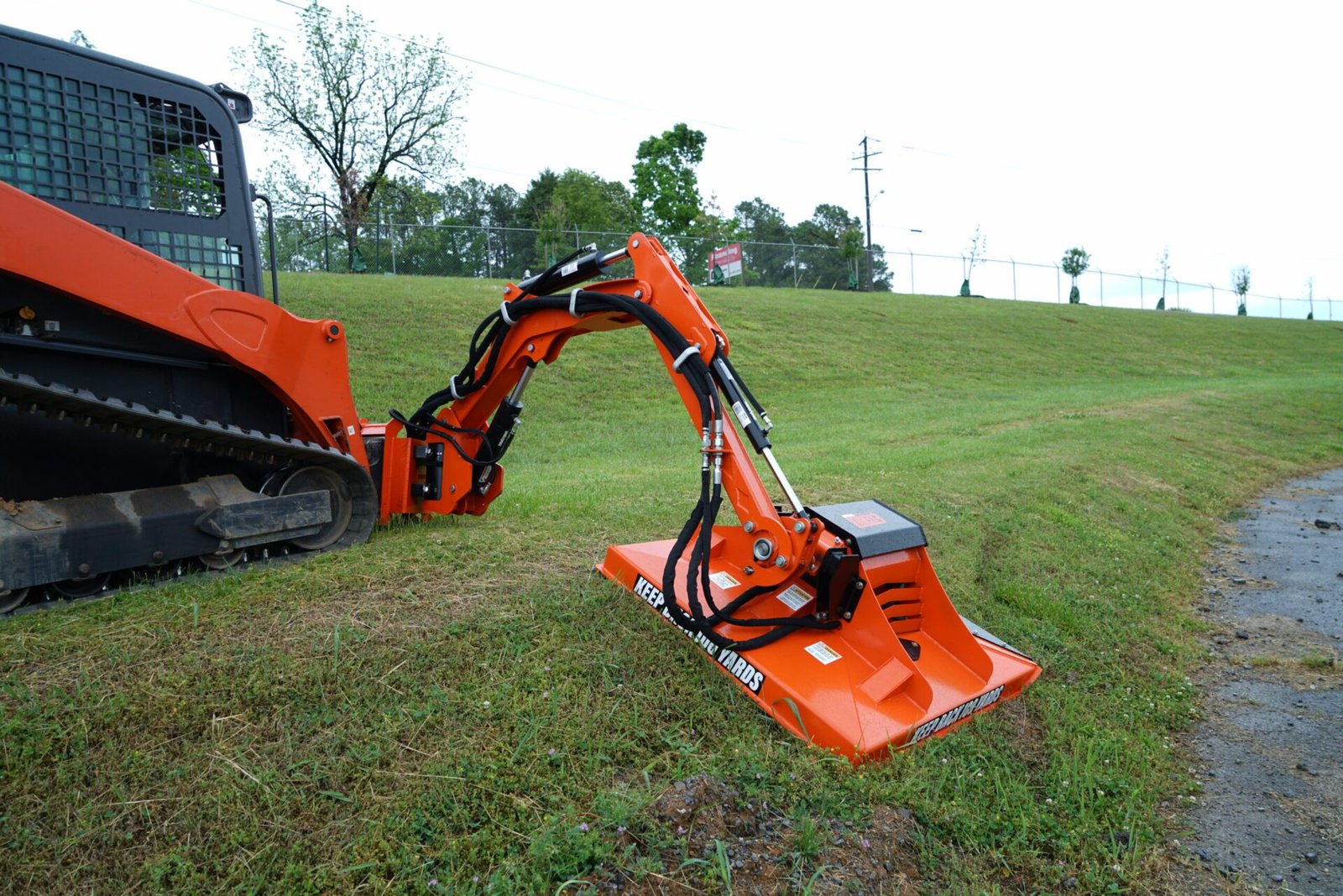 The Raptor Boom Arm for skid steers and compact track loaders is a revolutionary attachment that improves mowing efficiency for municipalities, road maintenance workers, and large property owners alike. With 5 mower head options and 180 degrees of cutting angle adjustment, almost everything is in reach with the unmatched versatility of the Raptor Boom Arm Mower. Hoses, Couplers, and choice of controller head included in purchase.