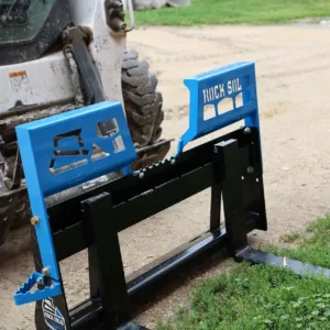 Introducing Rock Solid Attachment’s new heavy duty pallet forks, including a convenient, bolt-on brick guard and side step for enhanced versatility. The adaptable bolt-on brick guard features full and walkthrough options, enabling versatile usage. Additionally, the interchangeable side step can be securely mounted on either side of the pallet fork frame. With a walk-through design, operators can effortlessly enter and exit the skid steer cab. Complete with standard skid steer universal mount, 7 -12 gauge, grade A36 steel and a powder coat finish, these forks boast a robust 5,500 lbs. rating, ensuring reliable performance for a variety of heavy lifting tasks.