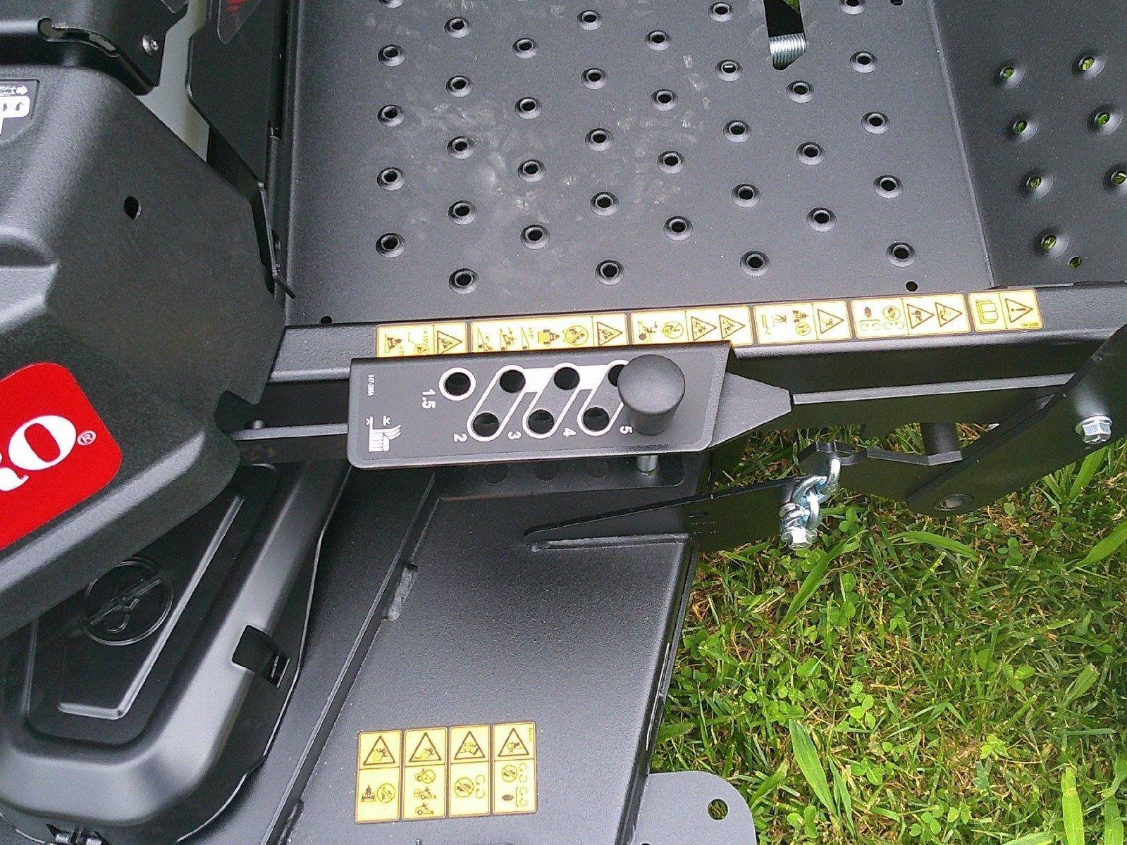 Four-Point Hanging Deck System: Ensures a level cut and added stability when mounting or dismounting, maintaining consistent results across your lawn.