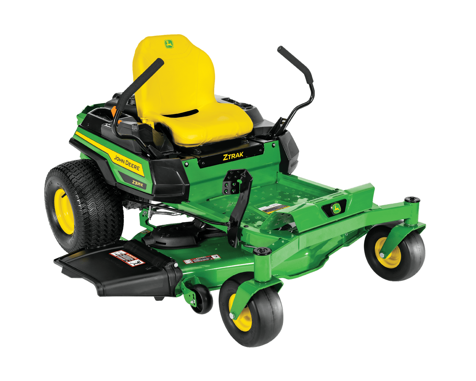 • The four-point deck hanging system doesn’t flinch under your feet when you get on or off the mower.