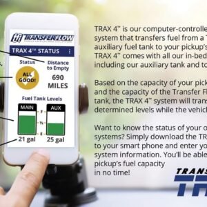 If you prefer not to use the TRAX 4™ app with your auxiliary tank but still want to know how much fuel you have, Transfer Flow offers an in-cab fuel level monitor LCD.